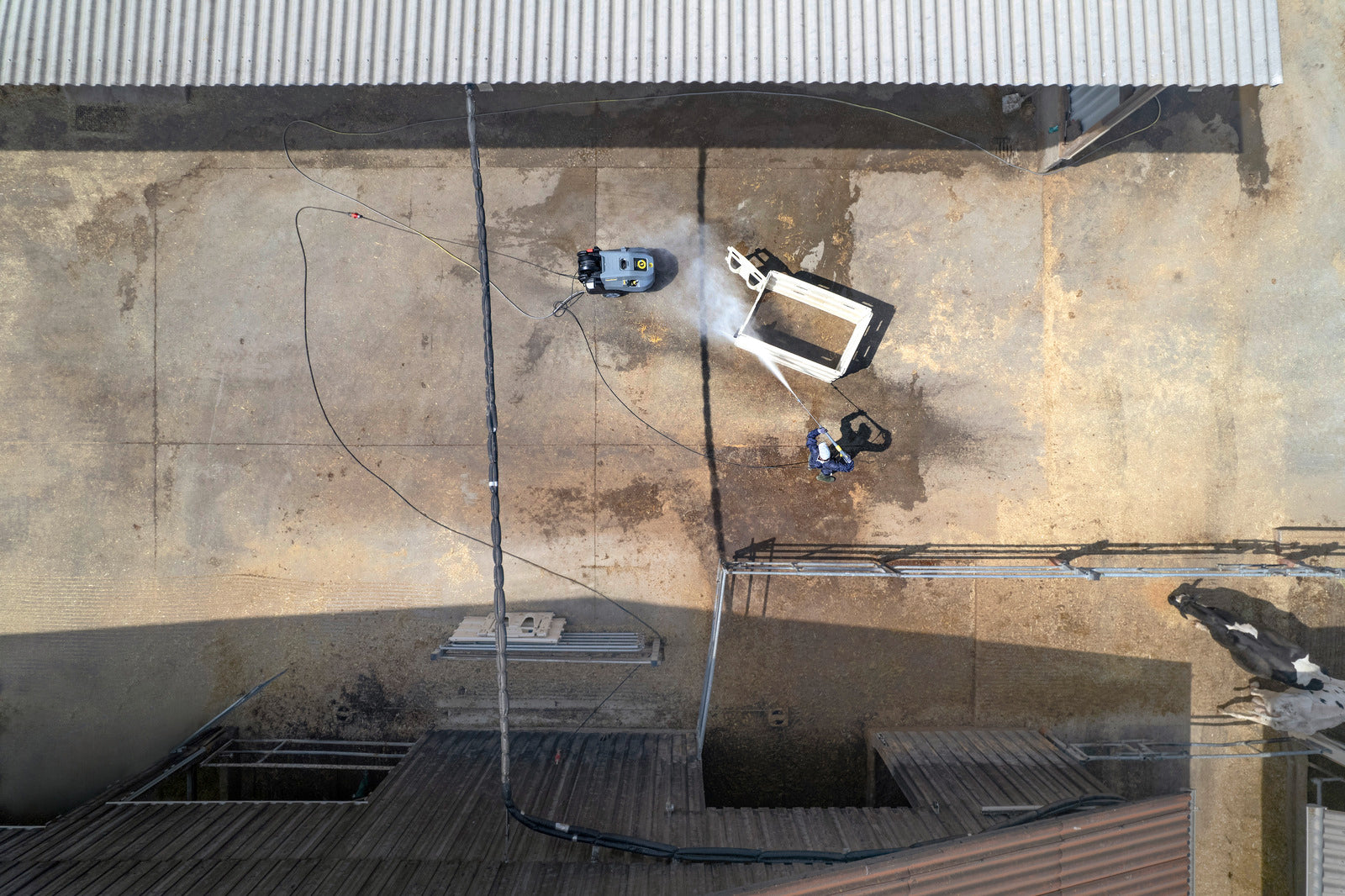 Hot-water cleaning up to 155°C — cuts grease & oil fast